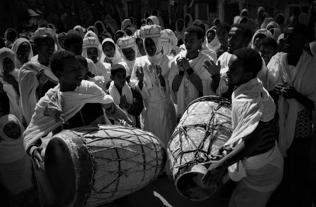 Hoy gracias a la escuela mística de Youtube tenemos acceso al mundo en una pantalla. Para ello les convido a una noche de Navidad en Lalibela, bastante actual, donde toda la liturgia de nuestra cristiandad está presente como se ha hecho en los últimos 2000 años, Cantos, Tambores y Cornetas. Aquí, SI, se puede ver como influenció el Canto gregoriano en el flamenco, en los actos litúrgicos barceloneses con el Negro Joan Marquet llevando el paso o en la actual: Hermandad de los Negritos de Sevilla. Pero también son evidentes las influencias en los tambores bata o el movimiento Rastafari , en el Caribe y en los espirituales o la música de John Coltrane.
