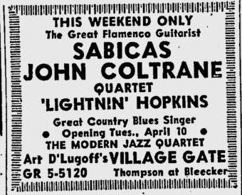 Sabicas compartió cartel con Coltrane y todos los demás lo adoraban, ¿Cómo ninguno fue capaz de acompañarlo?, no fue ni por color, ni por empatía, todo me hace pensar que nunca entendieron ni su música, ni sus tiempos, ni su capacidad de improvisación. Ante estas situaciones Sabicas nunca se vio motivado para ni intentarlo, le paso como con el inglés, sabía tres palabras y mal, lo que había que aprender ya lo había aprendido en Pamplona.